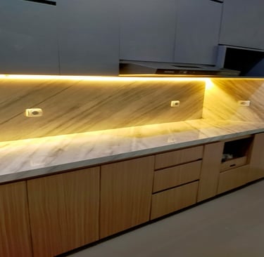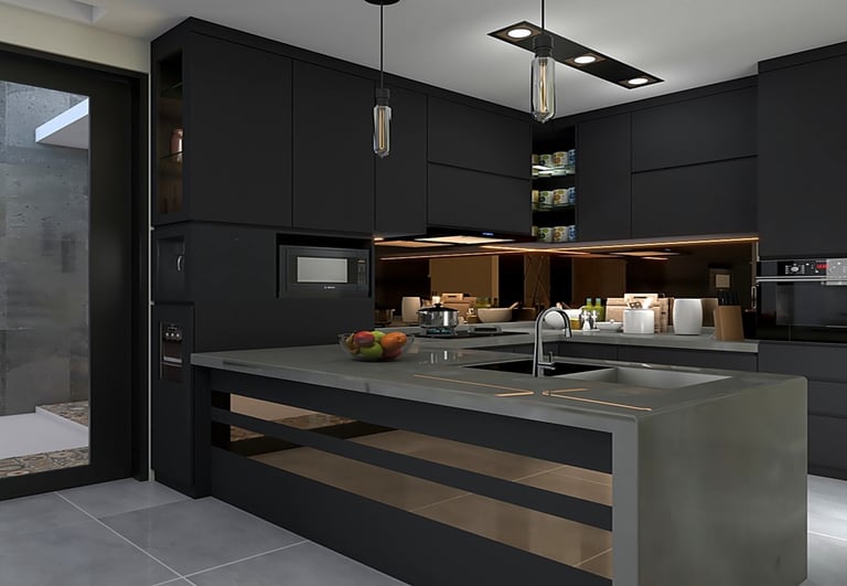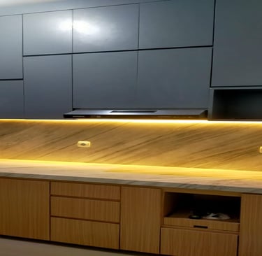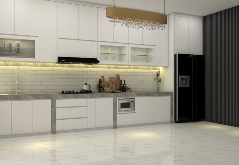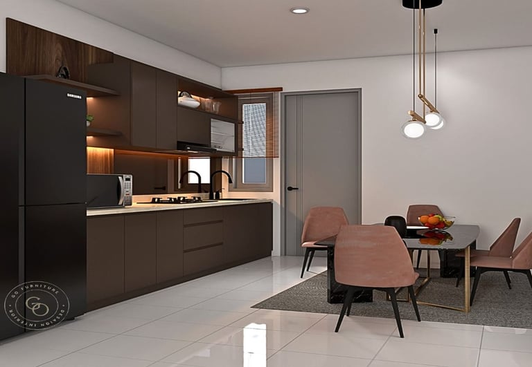 DAPUR MODERN adalah ruang memasak yang dirancang dengan gaya minimalis, fungsional, & menggunakan teknologi terkini. Konsep ini mengutamakan efisiensi, estetika yang bersih, serta pemanfaatan ruang secara optimal.