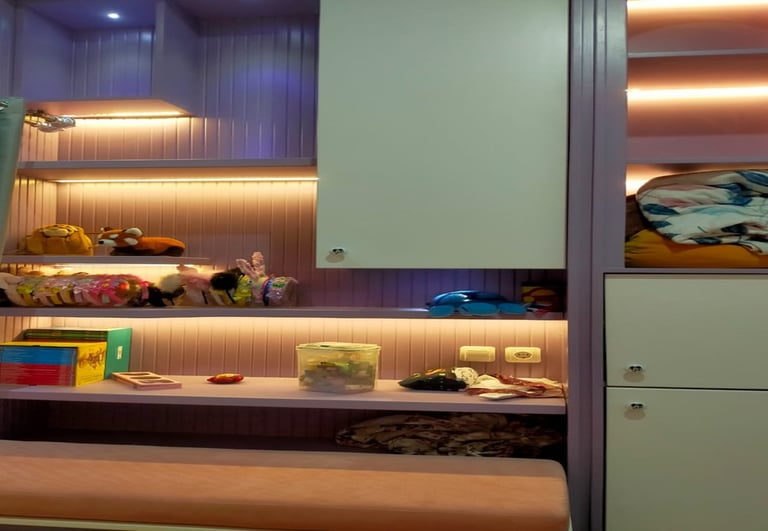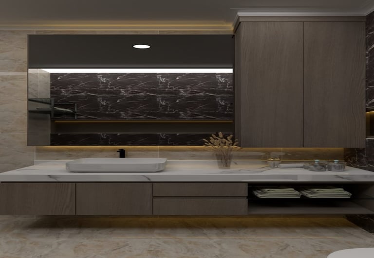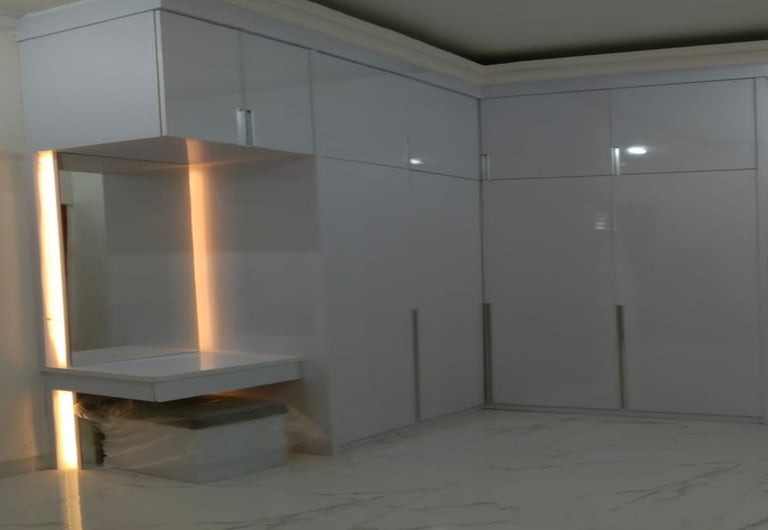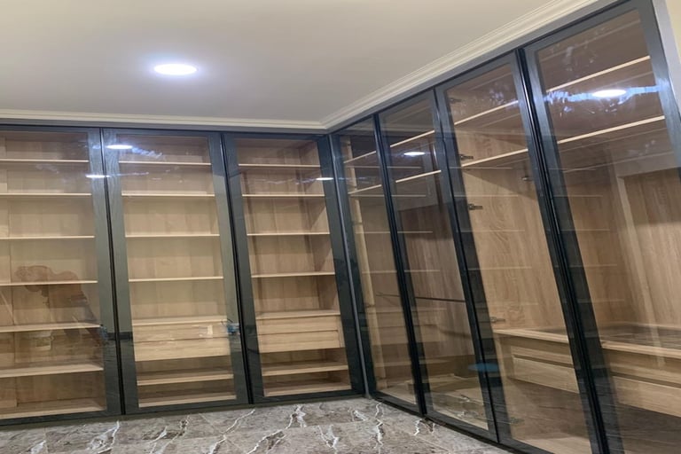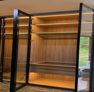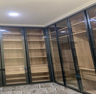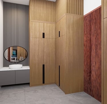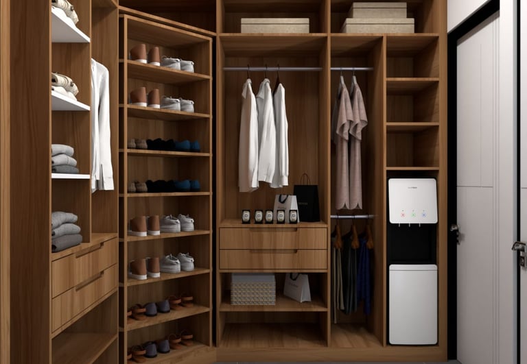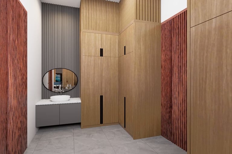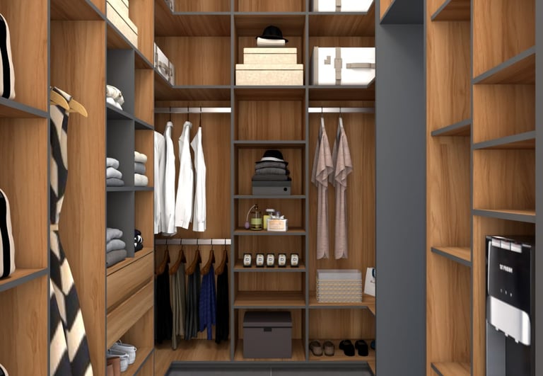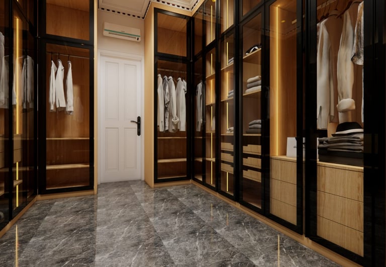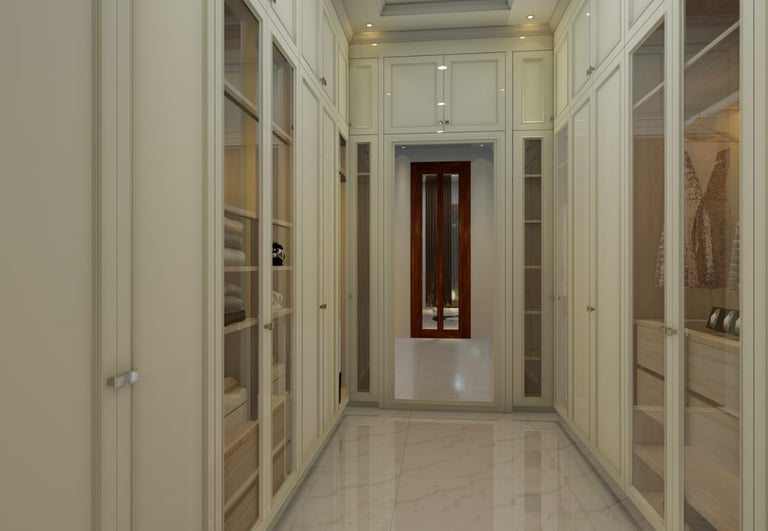 LEMARI WALK-IN Adalah ruang khusus yang berfungsi sebagai lemari besar, biasanya untuk rumah dengan ruang lebih.