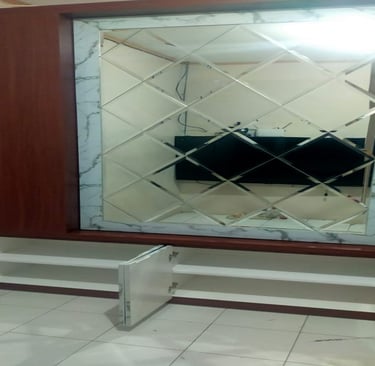 KACA BAVEL Menambah ruangan menjadi indah dan elegan yang dijadikan sebagai pembatas ruangan yag dilengkapi dengan ornamen ornamen lainnya.