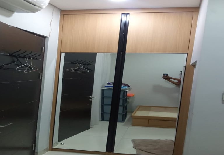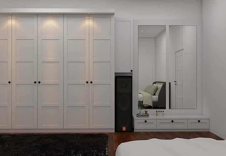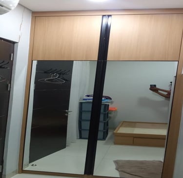 BEDROOM SET dilengkapi dengan lemari tas & baju merupakan furniture esensial dalam kamar tidur yang berfungsi untuk menyimpan pakaian, aksesoris, & koleksi tas dengan rapi.