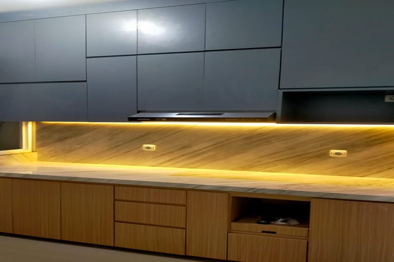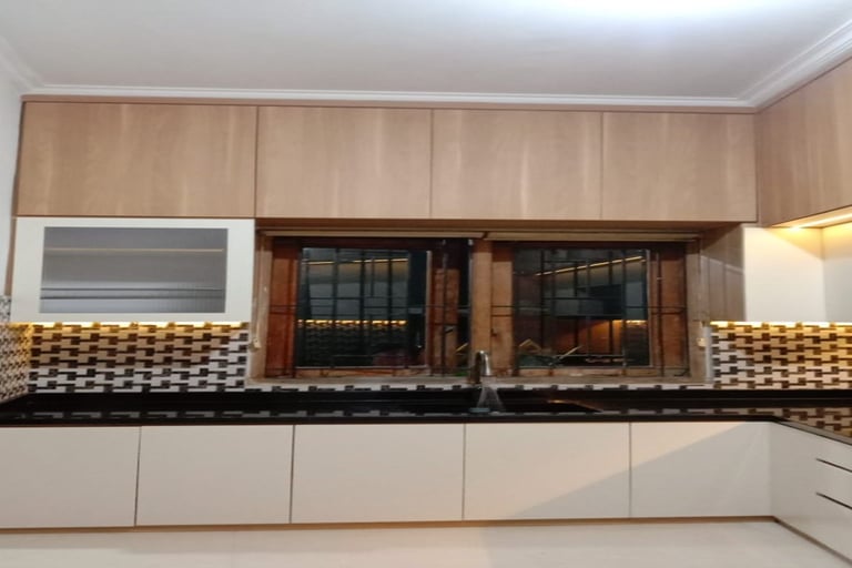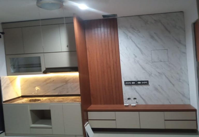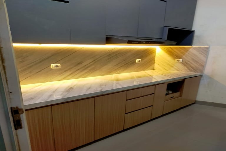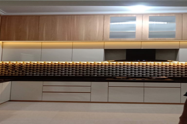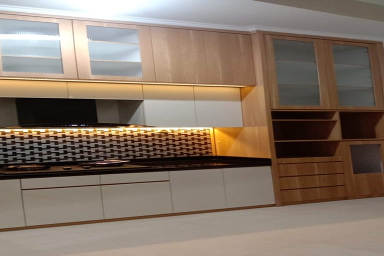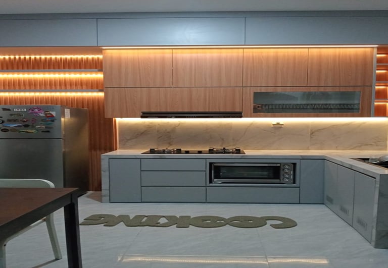 Kitchen Set Modern dengan Sentuhan Kayu Elegan,