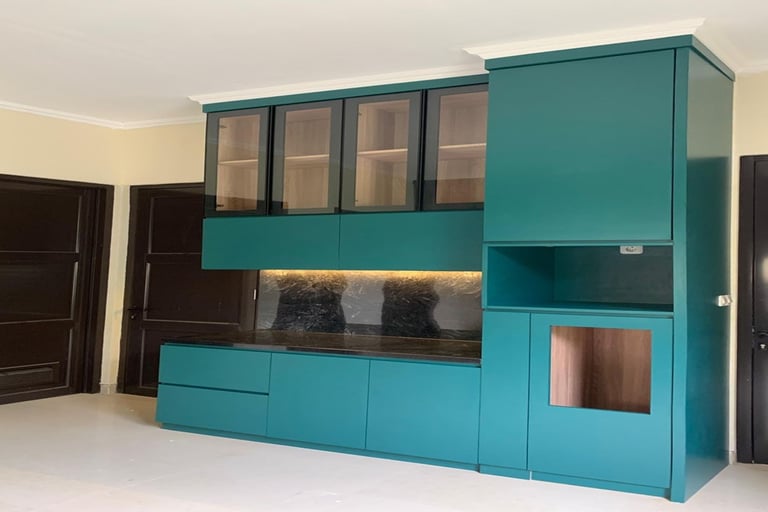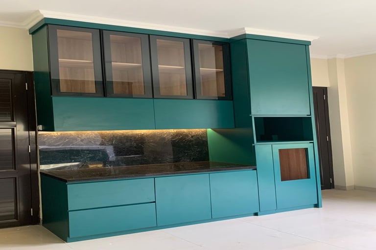 KITCHEN SET Yang dilengkapi dengan lemari serta rak mini bar.