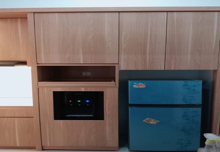 LEMARI HIAS Disisi kiri ada microwafe dan sisi kanan ada dispenser,