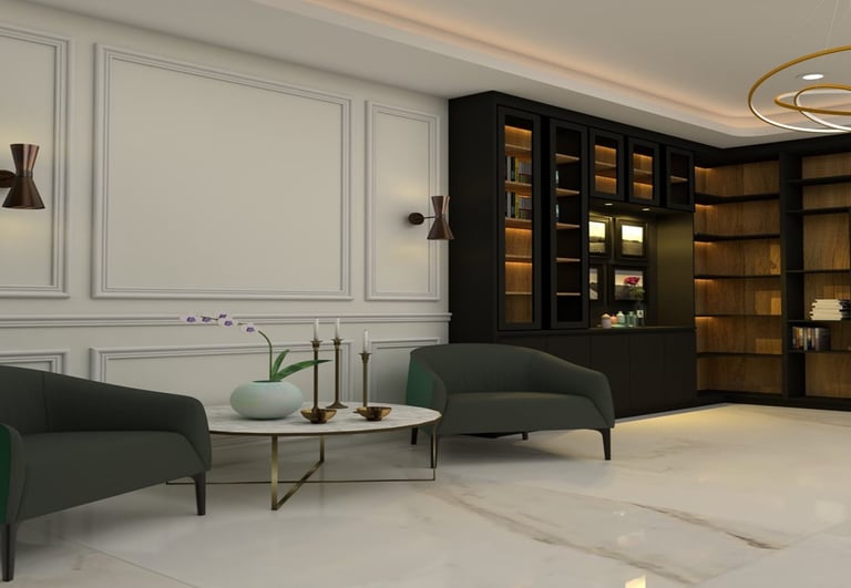 SITTING ROOM dengan warna elegan menciptakan suasana mewah, nyaman, & berkelas.
