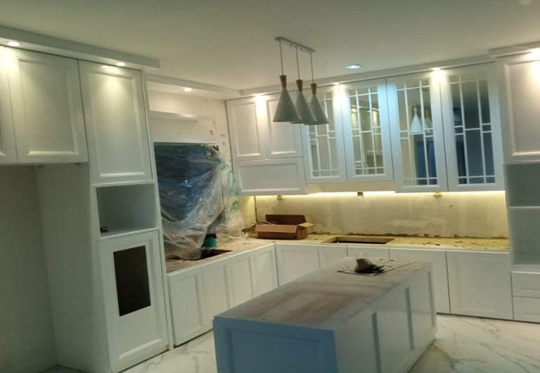 Kitchen Set Klasik Finishing Cat Duco Berbentuk L