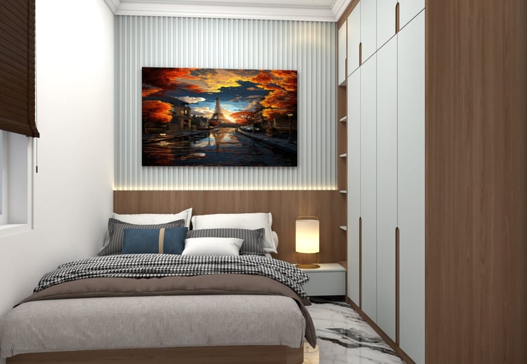 Interior Kamar Tidur Modern dengan desain yang elegan dan fungsional.
